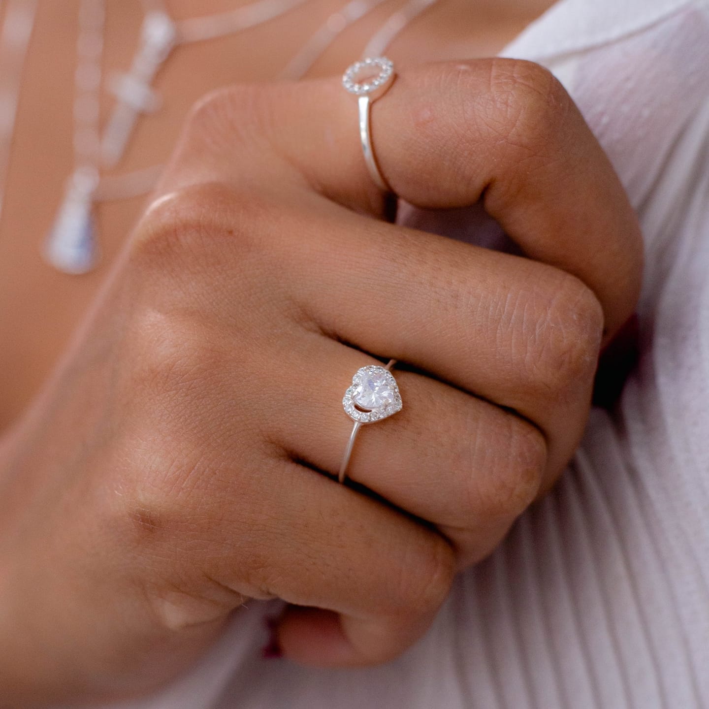 Anel Solitário Coração Cravejado